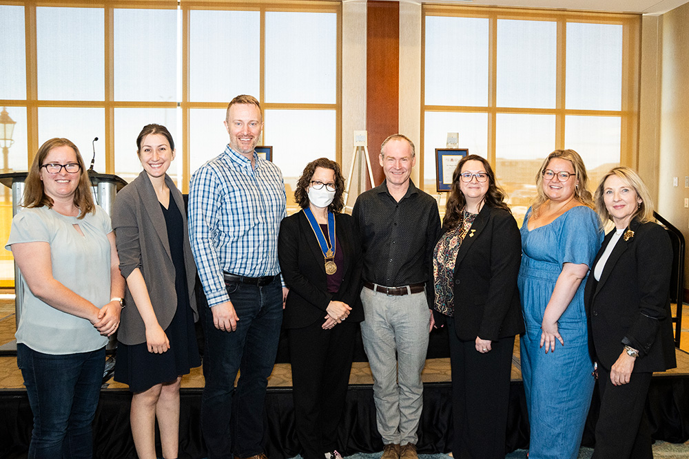 Far left- President Elect, Dr. Jeanette Verleun, FFTP, Dr. Ida Szarics , Past President, Dr. Steve Scales, CFPC National President, Dr. Carrie Bernard, CEO CFPC Dr. Mike Allen, PEICFP President Dr. Trina Stewart, CPA PEICFP Jessica Smith, and PEICFP Executive Administrator, Rosemary Burke-Perry ( Missing: Hon. Secretary- Dr. Maggie McNally)